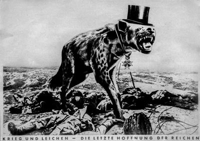 Own this great Heartfield Shop Poster of John Heartfield's antiwar poster masterpiece Krieg und Leichen (War And Corpses). The poster has been Handcrafted by John Heartfield's grandson. There are other versions of this savage poster revealing the devastation of war for profit. Heartfield's grandson has personally chosen this image because the expression of the war hound leaps out of the stark black and white landscape. Make a statement with this historic antiwar poster.
