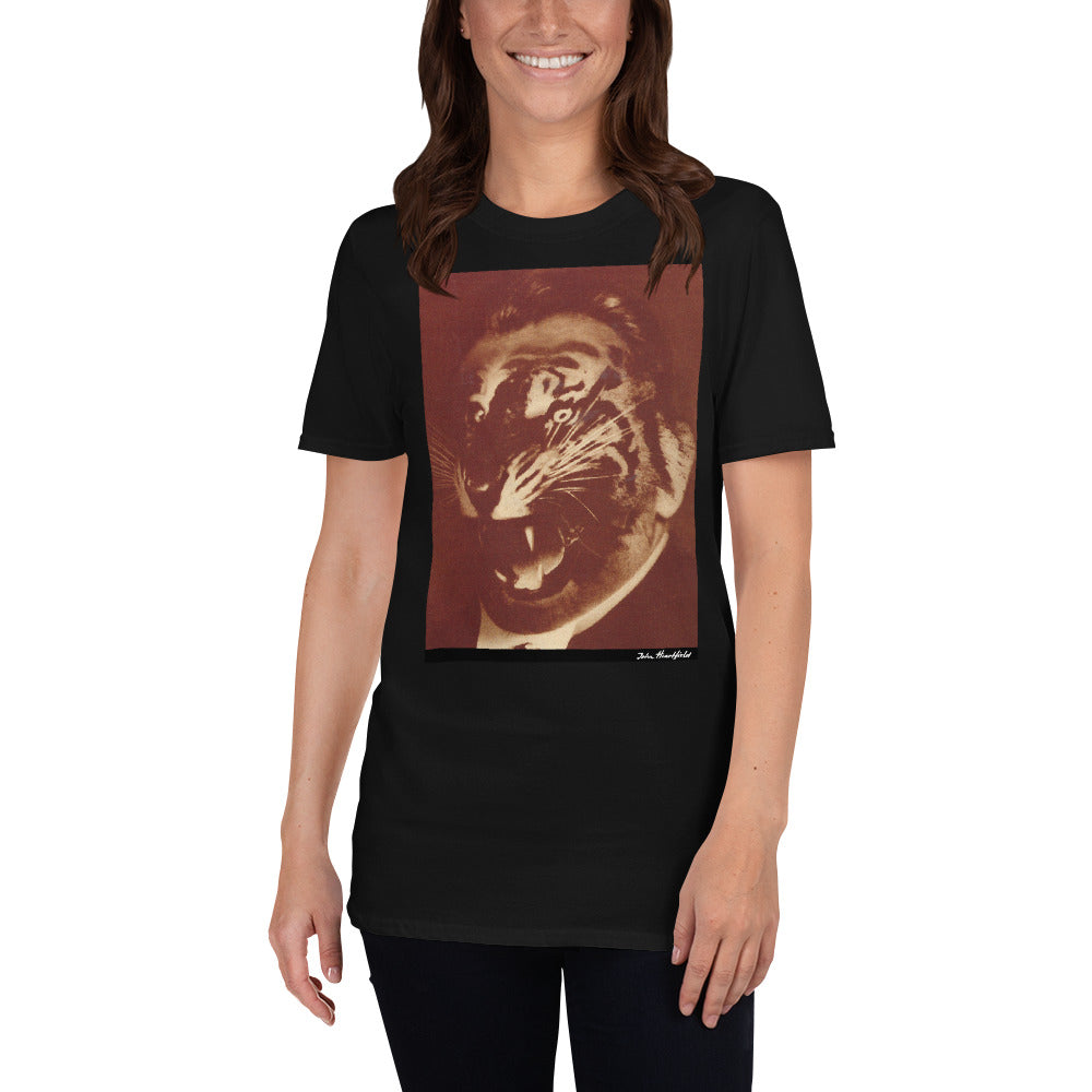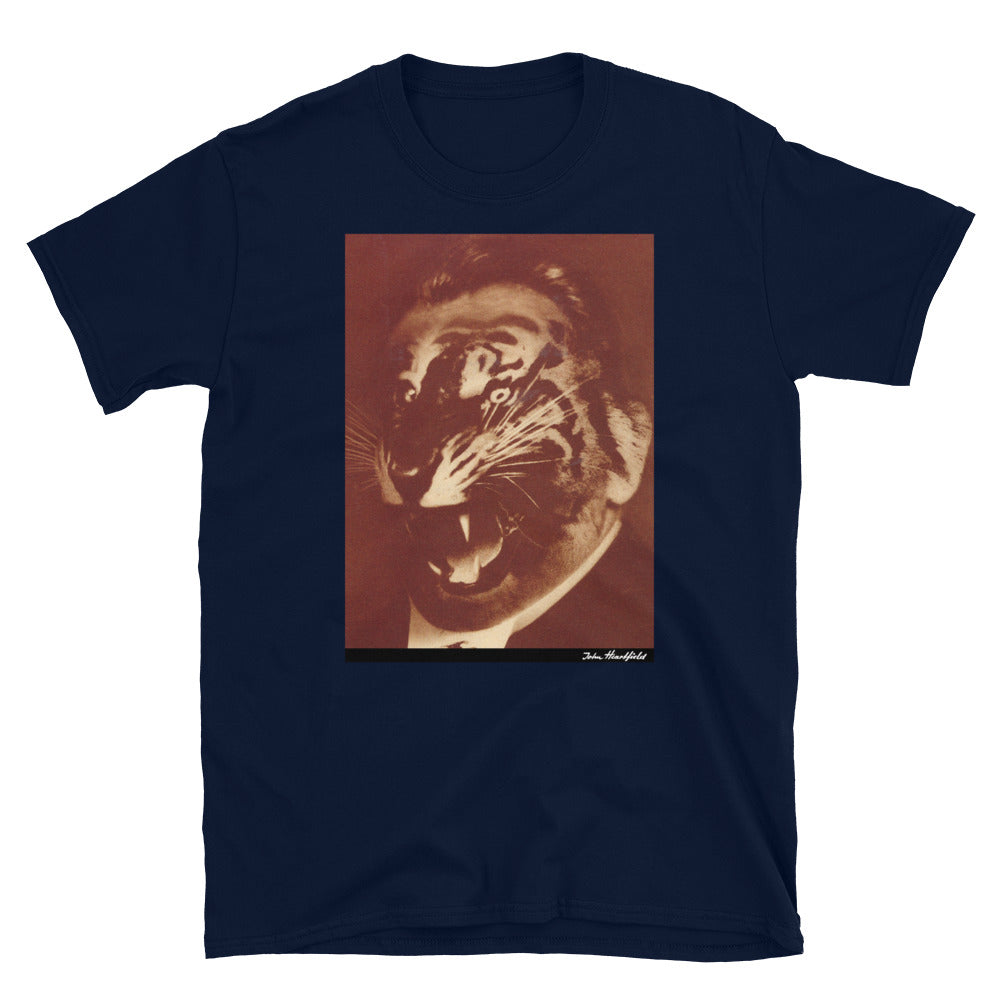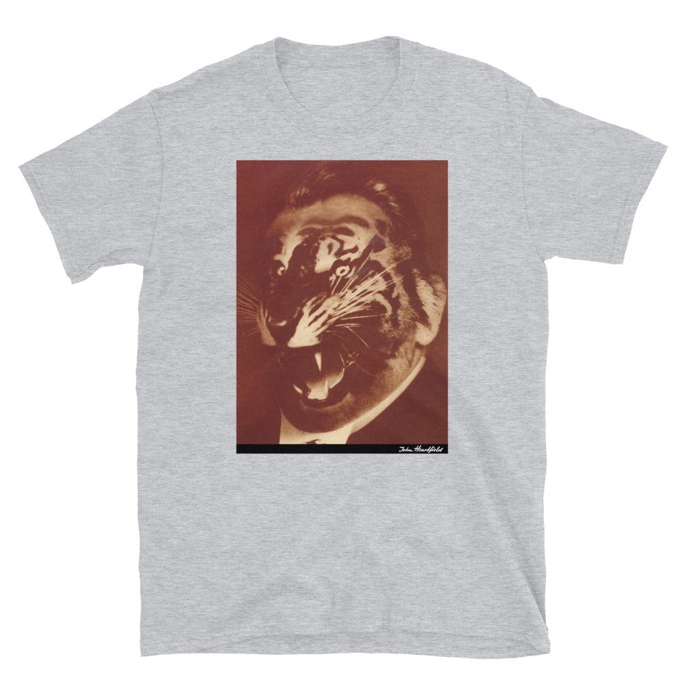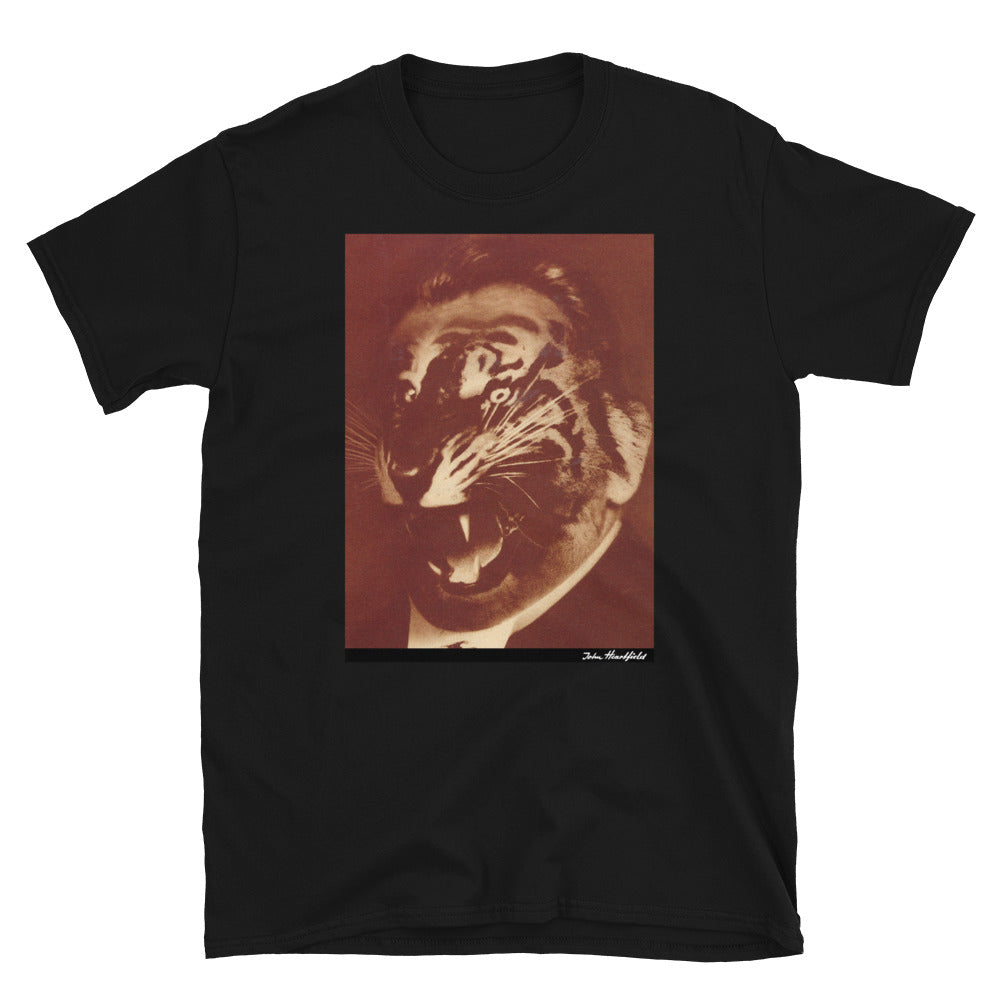 Make a statement with this famous collage art. The courageous artist John Heartfield created this masterpiece to show how quickly politics can become mindless savagery.