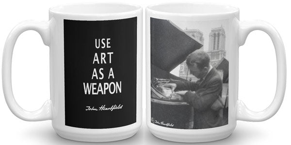 This famous political slogan mug is beautiful, durable, and inspiring. The famous John Heartfield quote is printed to last on this high-quality white glossy mug. The German pacifist artist Heartfield used his “art as weapon” against fascism and The Third Reich. Heartfield overcame all obstacles, including Nazi assassination attempts, to create famous antifascist art that saved lives. View his work and modern political artists on The John Heartfield Exhibition.