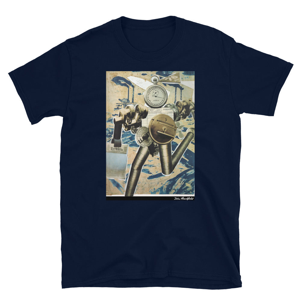 Robots art t-shirt features John Heartfield's famous political collage Rationalization Is On The March. Heartfield's masterpiece is an indictment of the corporate reasons for replacing human workers with machines.