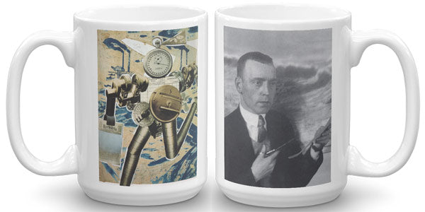 This robot art mug is beautiful, durable, and inspiring. The John Heartfield art is printed in full color on this white glossy mug. “Rationalization Is On The March” is Heartfield's vision of corporate rationalization for replacing workers in so many jobs. Corporate rationalization won't food on the table. View John Heartfield's work and modern political artists on The John Heartfield Exhibition.