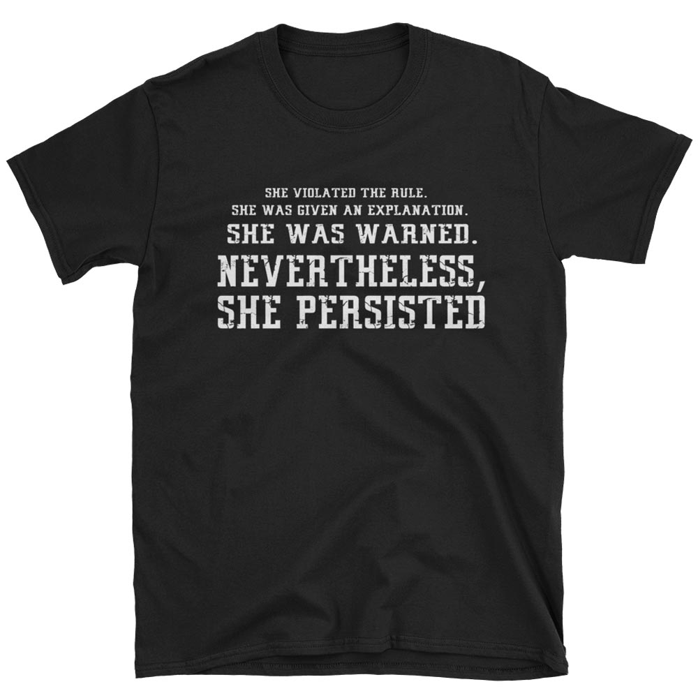 "Nevertheless, she persisted" is a rallying cry for empowered women everywhere. Wear this great t-shirt to show you're part of a growing movement