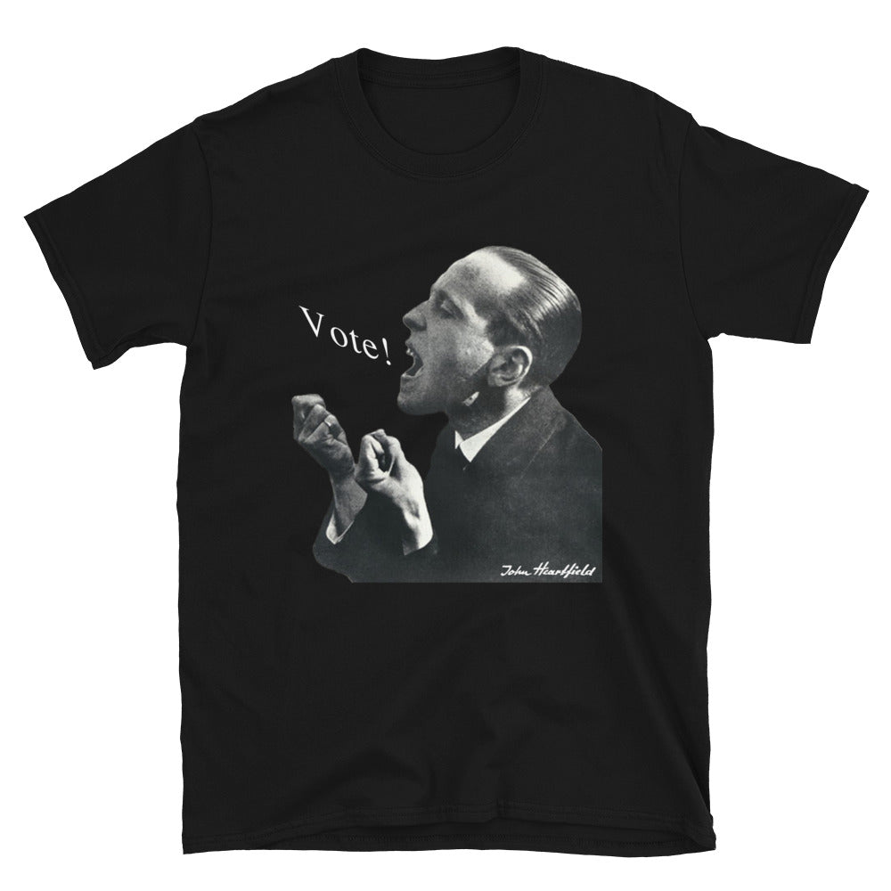 The "agenda" and constant lies are enough to make anyone angry. But only voting can oppose them. This great shirt features famous antifascist artist John Heartfield expressing his fury at voter apathy. The Nazis took over Germany with just 46 percent of the national vote, and fascism always results in disaster.