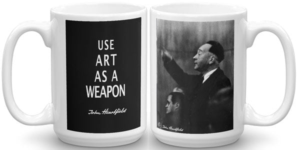 This famous political slogan mug is beautiful, durable, and inspiring. The famous John Heartfield quote is printed to last on this high-quality white glossy mug. The German pacifist artist Heartfield used his “art as weapon” against fascism and The Third Reich. Heartfield overcame all obstacles, including Nazi assassination attempts, to create famous antifascist art that saved lives. View his work and modern political artists on The John Heartfield Exhibition.