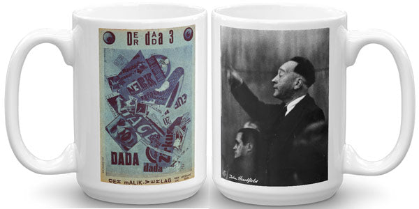 This famous DADA art mug is beautiful, durable, and inspiring. The famous John Heartfield collage is printed to last on this high-quality white glossy mug. Heartfield was a founding member of Berlin Club Dada. Dada influence is found everywhere in modern culture. Later, Heartfield became the founder of antifascist collage. The German pacifist artist survived Nazi assassination attempts to create antifascist art that saved lives. View his work and modern political artists on The John Heartfield Exhibition.